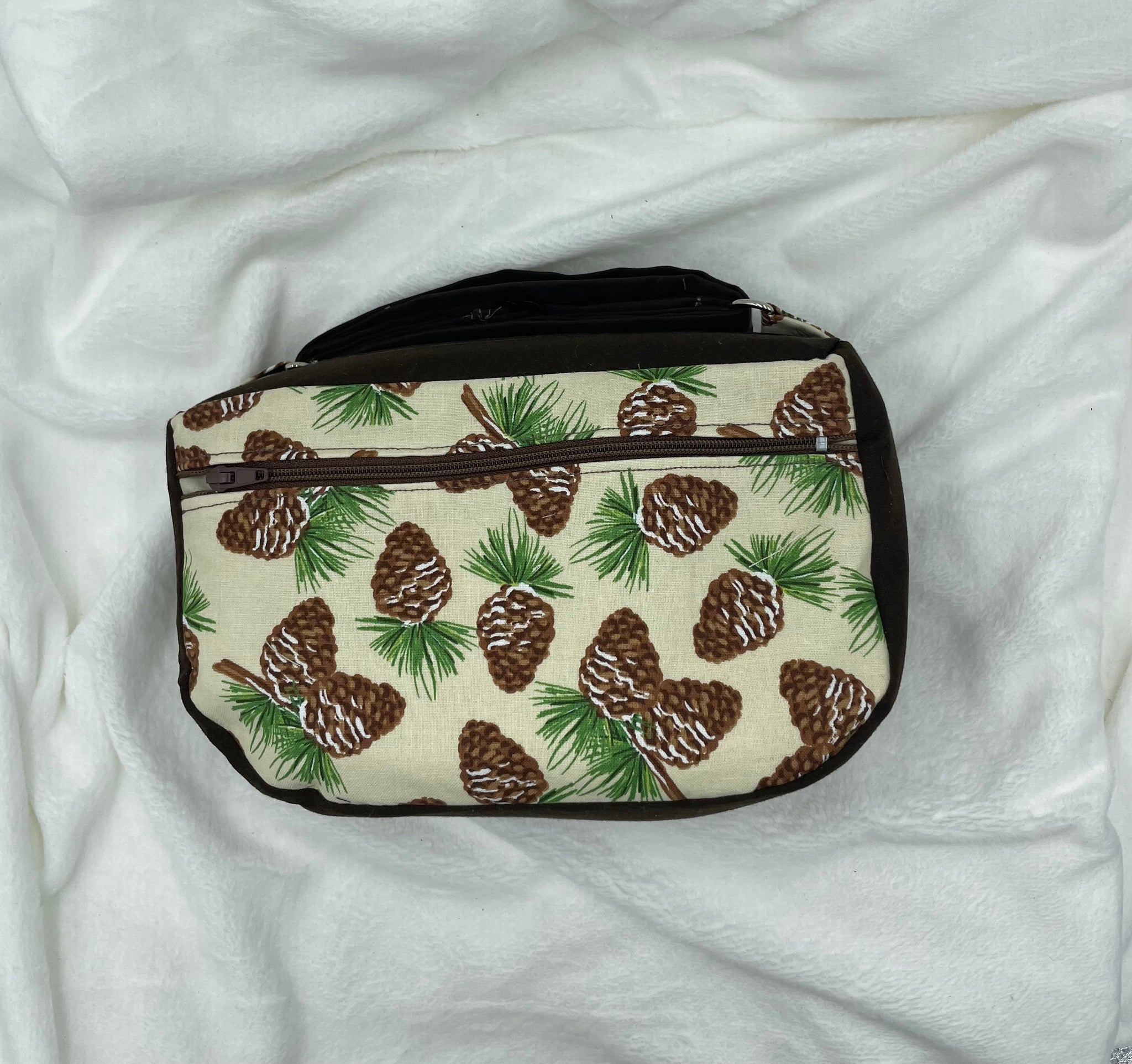 Take a walk through the pines with this nature-inspired Boho Bitty Bag! Covered in pinecones and evergreens, it’s perfect for woodland lovers and winter wanderers alike. The outside zipper pocket keeps your keys or chapstick within easy reach, while the roomy main compartment holds your on-the-go must-haves. Finished with a 51" adjustable strap for the perfect fit.