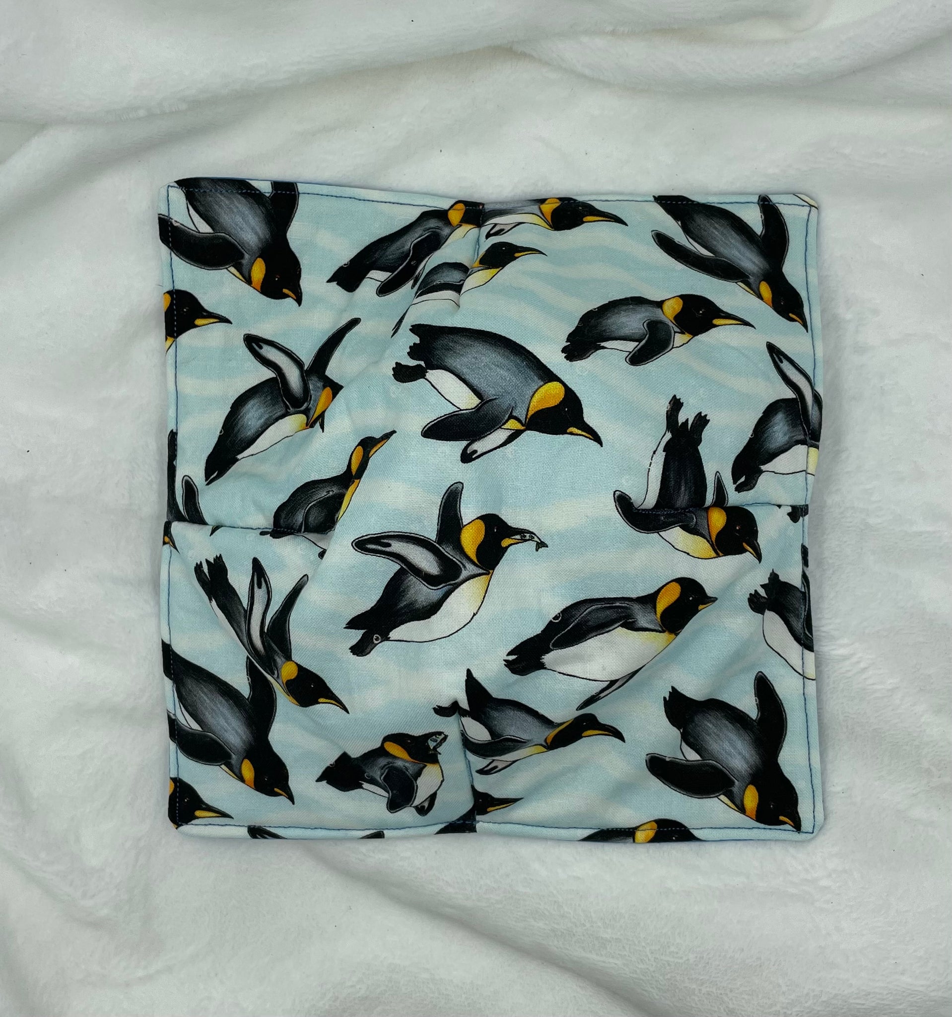 Keep your hands cozy while your meal takes a chilly dive with the Penguin Plunge Bowl Cozie! Covered in a lively flock of penguins swooping, diving, and waddling across icy-blue waters, this cozie brings the charm of the Antarctic straight to your kitchen.
