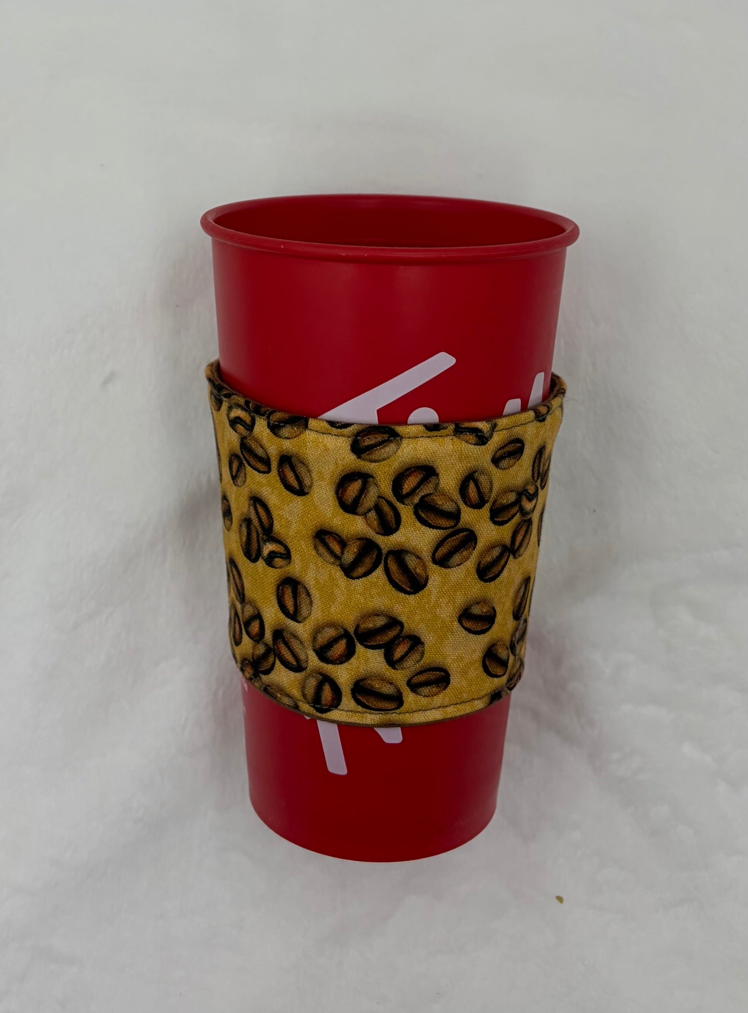 This coffee bean drink cozie sleeve wraps your cup in rich, roasted vibes, sprinkled with bold little beans that look like they’ve just rolled out of a cozy café dream. It’s basically a warm hug for your beverage, minus the awkward small talk.