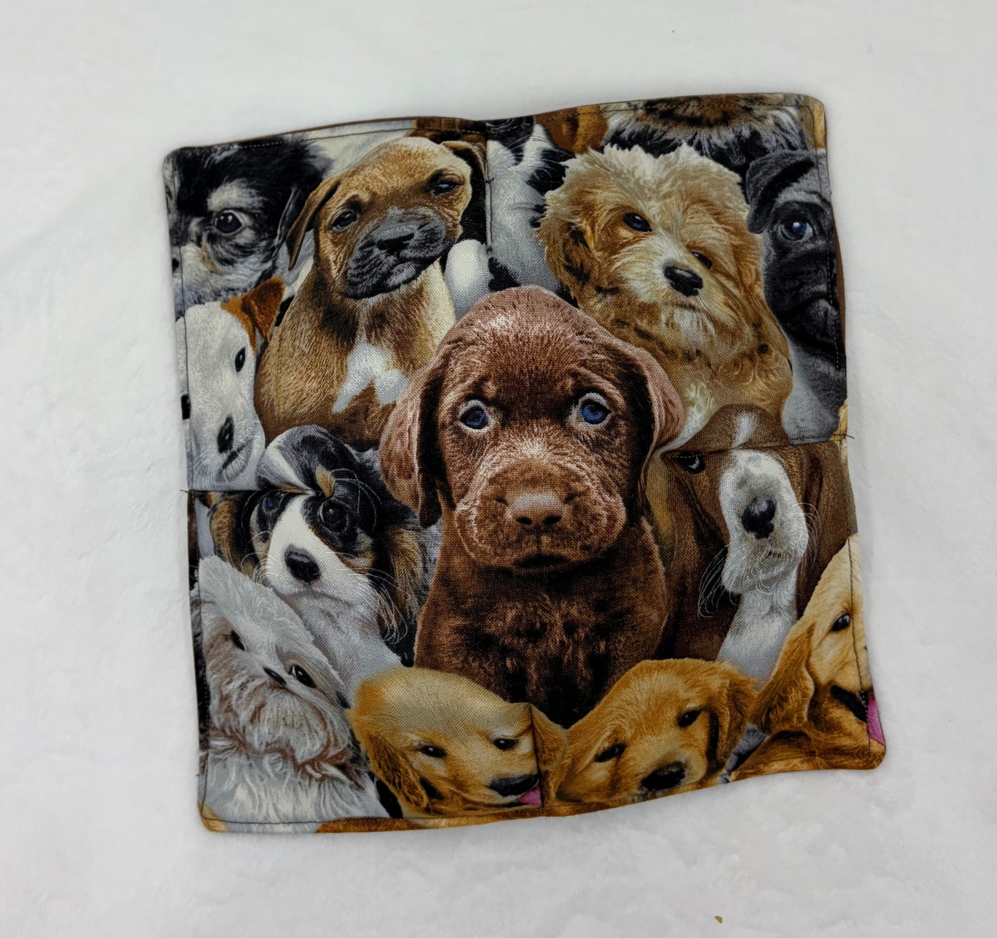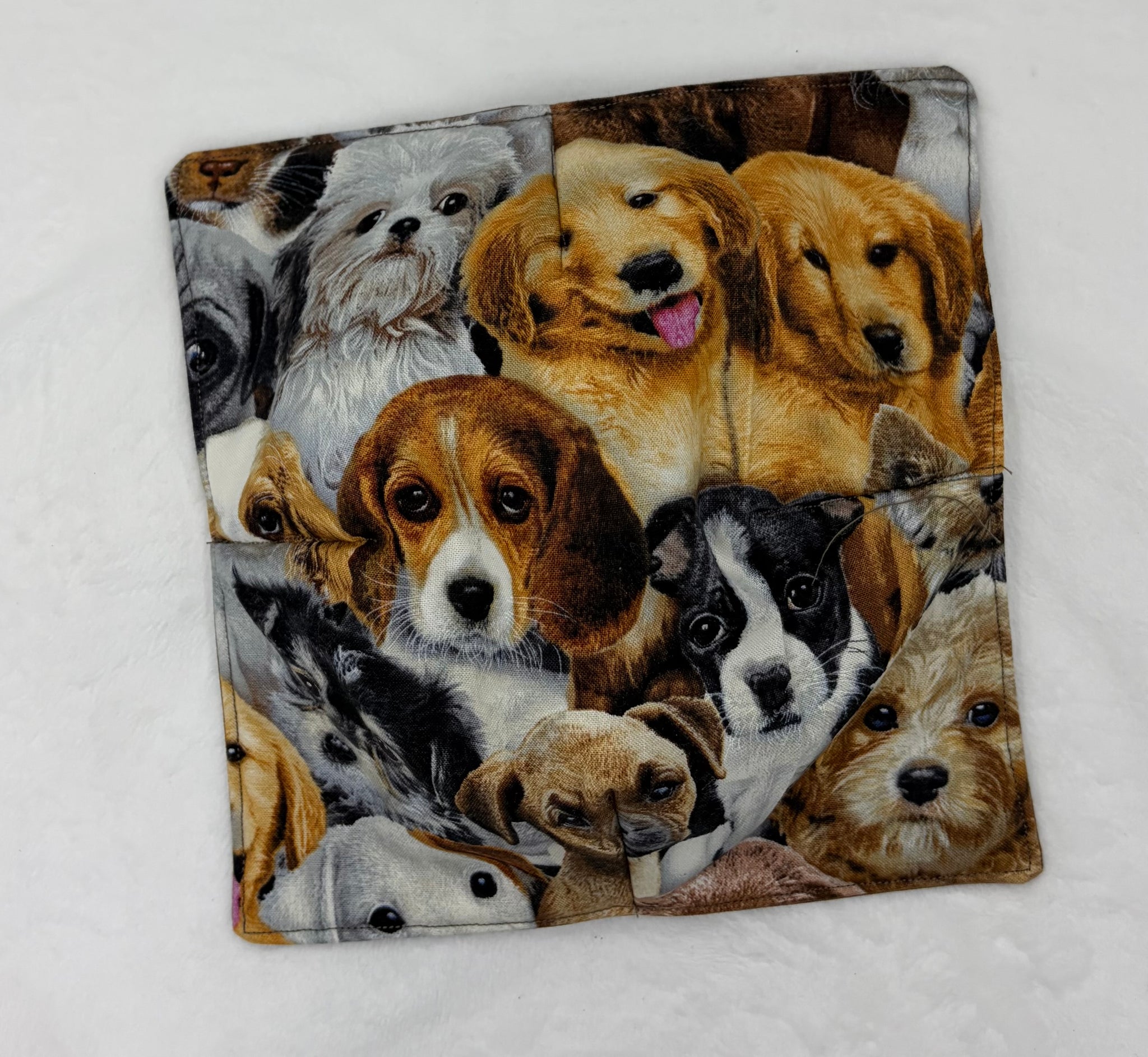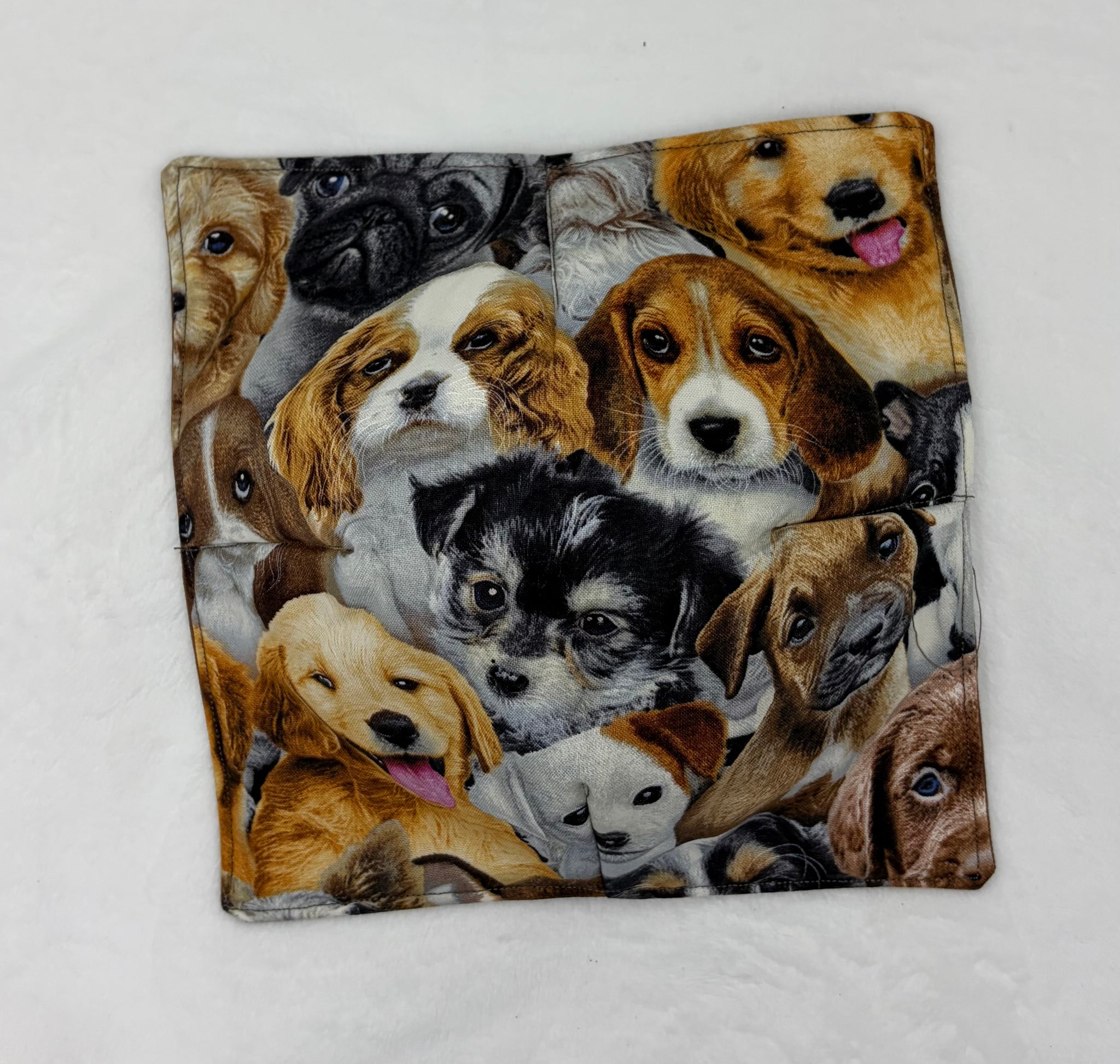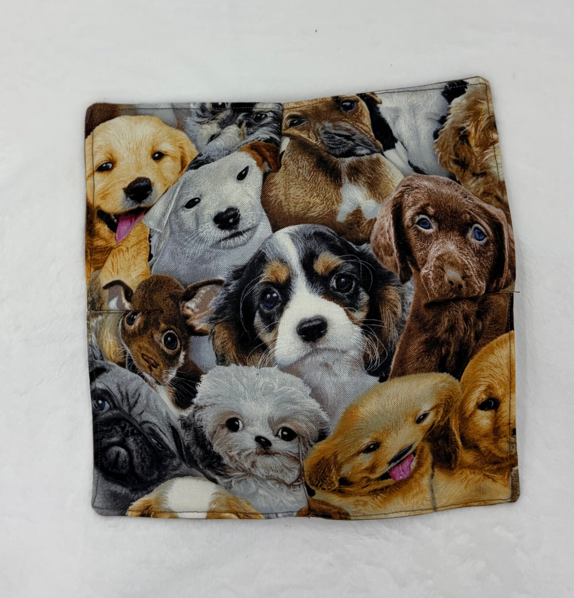This perfect puppy boho bowl cozie is basically a cuddle party for your kitchen, featuring an adorable parade of pups splashed across every inch. From floppy ears to tiny snoots, each cozie is a surprise lineup of furry charm since the fabric is pre-printed, making every one a unique pack of cuteness.